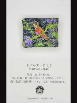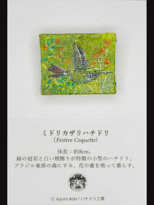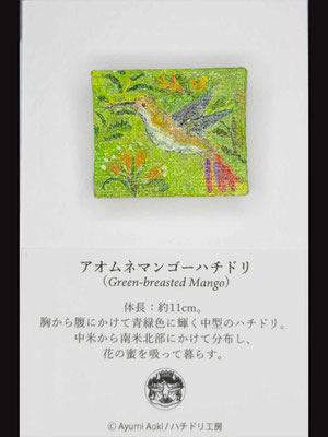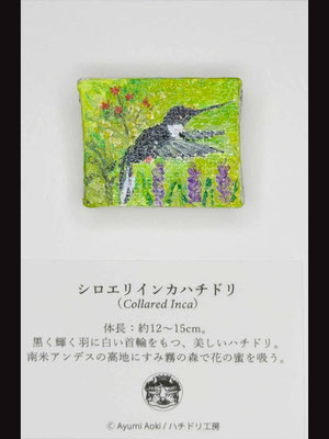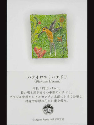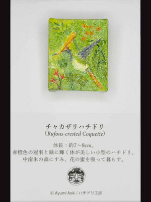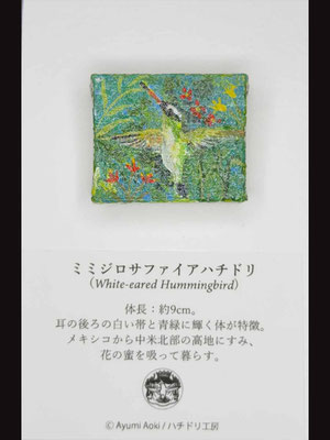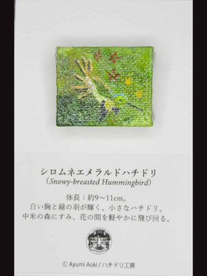その小さな世界に、羽ばたく瞬間のハチドリの美しさや、ふとした光のきらめきを閉じ込めるような気持ちで、ひとつひとつ描いています。